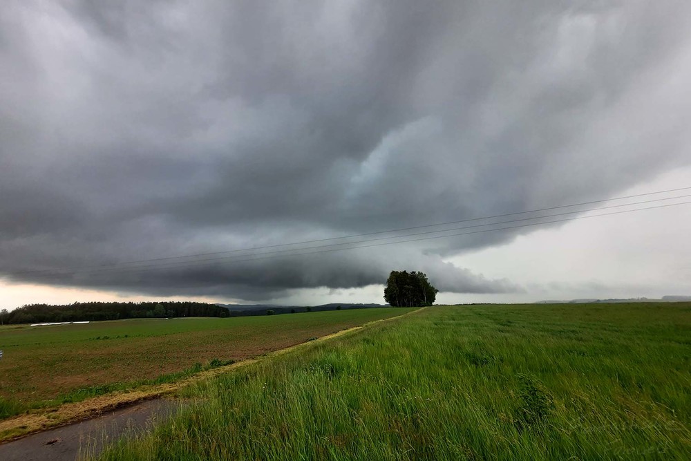 Nachdem die Böenfront langsam hinter den Bäumen am linken Bildrand verschwand, habe ich nochmal versucht, den Standort zu verlagern, doch leider schwächte sich die Zelle zunehmend ab, sodass keine Strukturen mehr vorhanden waren.