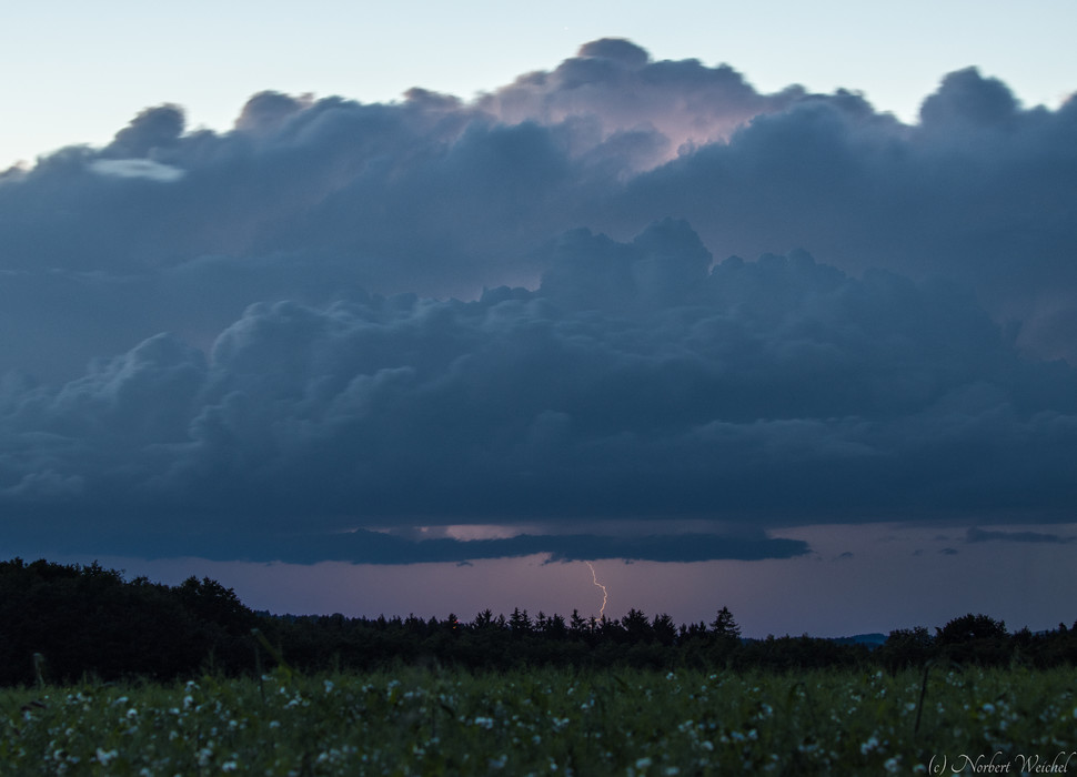 Scherung ausgeprägt (0-6km= 20-30 m/s, 0-1km= 10-15 m/s) -> schnelle Verlagerung der Gewitter