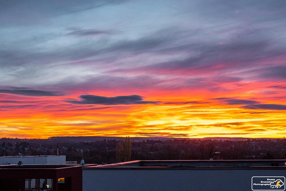 14.11.2020 - Auch von mir der schöne farbenfrohe Sonnenuntergang von unserem Balkon aus fotografiert. (Weimar)