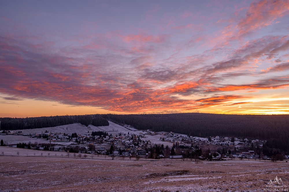 Heute gabe es ein schönes Abendrot über dem winterlich angehauchten Carlsfeld: