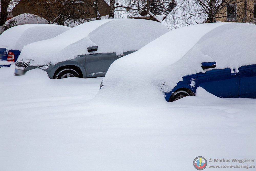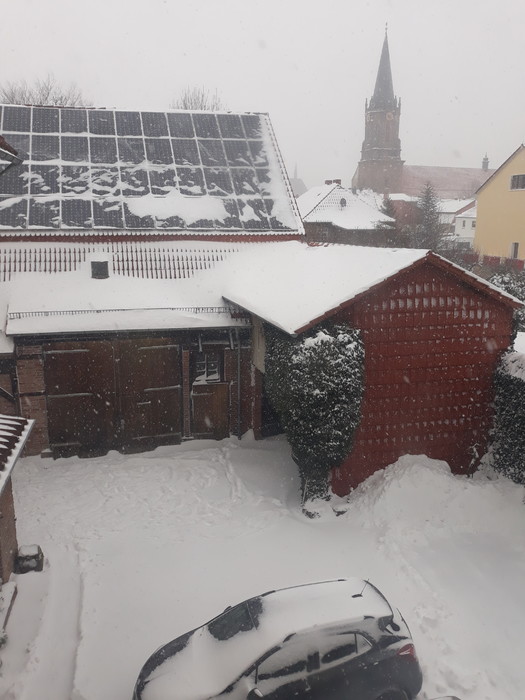 41cm Schnee lagen heute auf dem Autodach in Weimar-Schöndorf. Viel ging hier heute nicht. Ein paar Eindrücke: