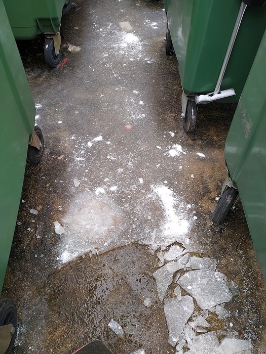 Dicke Eisschicht im Müllhaus