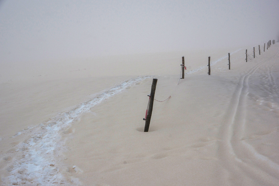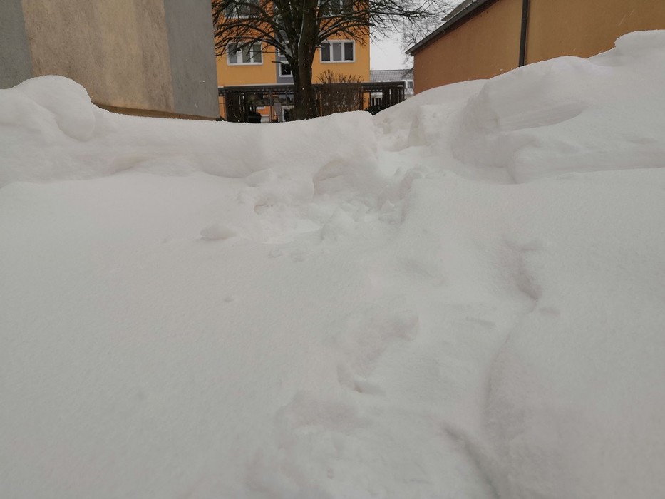 - Schneehöhenmessung unmöglich, Verwehungen teils 30-40 cm tief
