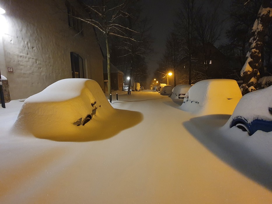 gerade eben mal kurz draußen gewesen, aktuell ca. 14cm Schnee, -2,7 °C bei leichtem Schneefall