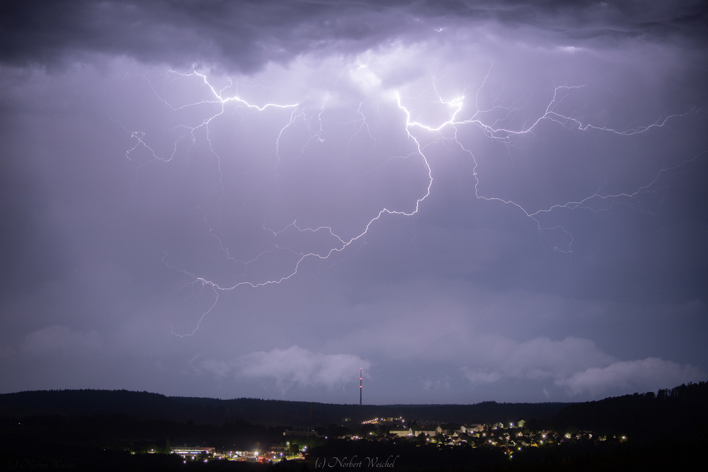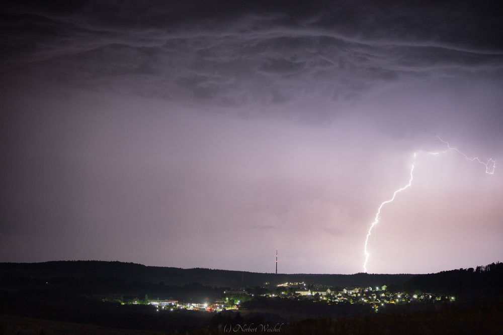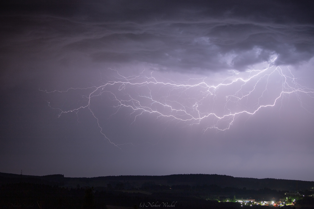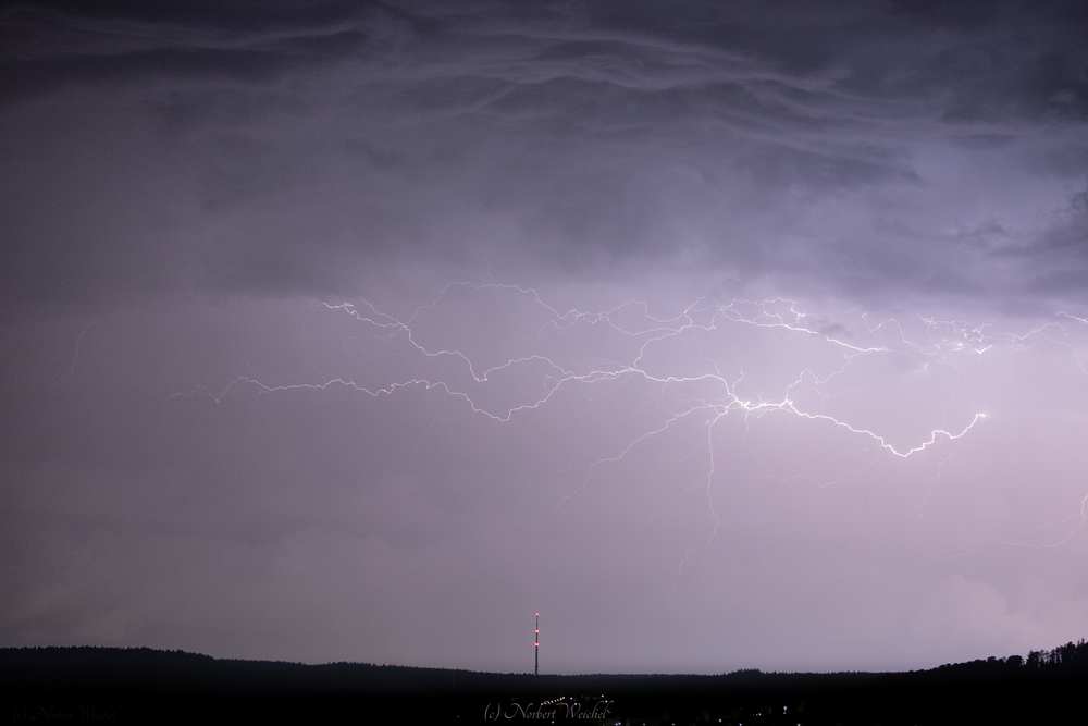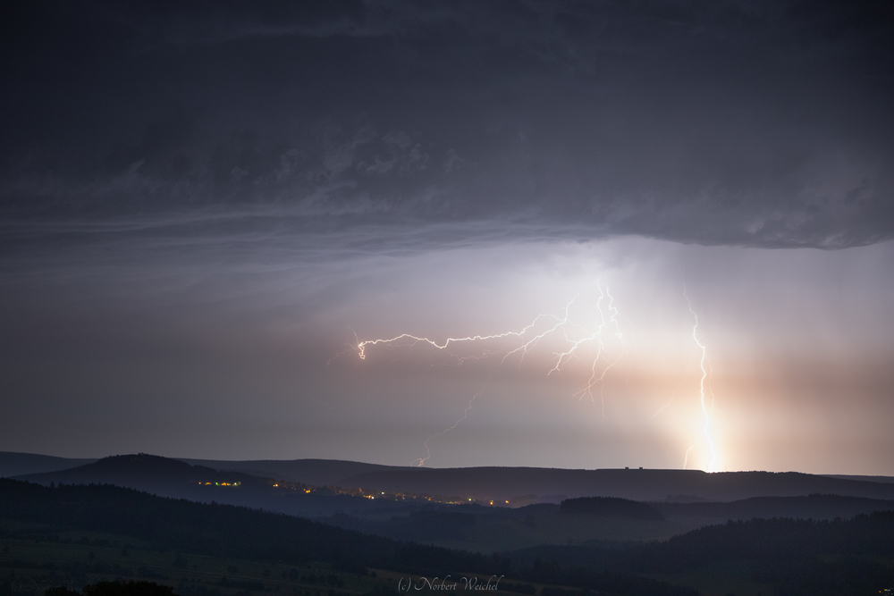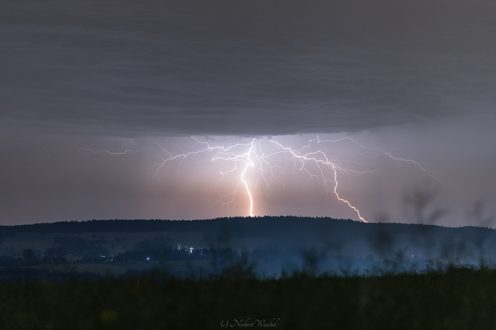 Die ausgreifenden Gewitter nach Westsachsen zogen Richtung West/Nordwest und somit ganz gut in Ruhe länger fotografieren zu können, von der Blitzrate her ging es eher gemütlich zu.