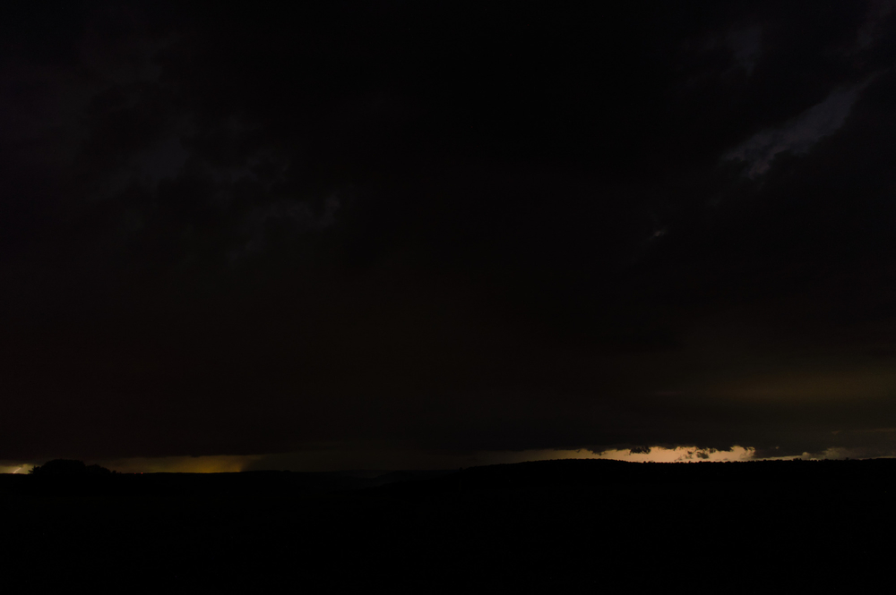 Es gab auch noch ein wenig Auftrieb, sogar mit kurzzeitiger Rotation im Radar dazu und es entwickelte sich kurzzeitig nochmal ein neues Gewitter mit einigen Erdblitzen. Es war noch zu hell für längere Belichtungszeiten, deshalb hab ich von dieser Szene leider keine Erdblitze, aber im Zeitraffer ist etwas Flackern drauf.