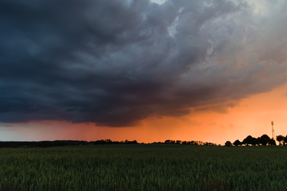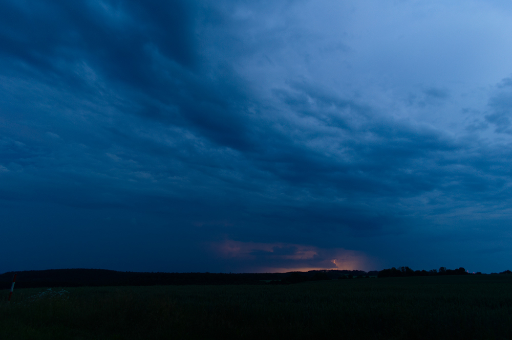 In den Wettermodellen waren an dem Tag für's Eichsfeld bzw. Westthüringen immer mal Gewittersignale angegeben. Ich plante an dem Tag eigentlich kein Chasing, weil das Timing nicht so ganz in die private Planung passte. Schließlich fand ich nach dem Abendbrot mit der Family doch etwas Zeit. Markus kündigte via Facebook eine Gewitterwarnung für's EIC an. Das war quasi mein Startschuss mich auf die Socken zu machen. Ich packte schnell mein Kram ein und bin den I-Berg hochgeheizt. Da ich die Strecke und den Aussichtspunkt gut kenne, dauerte das gerade mal 5 Minuten. Bei Kalteneber oben angekommen, sah man aber schon, dass die Zelle schon ihre besten Zeiten hinter sich hat.