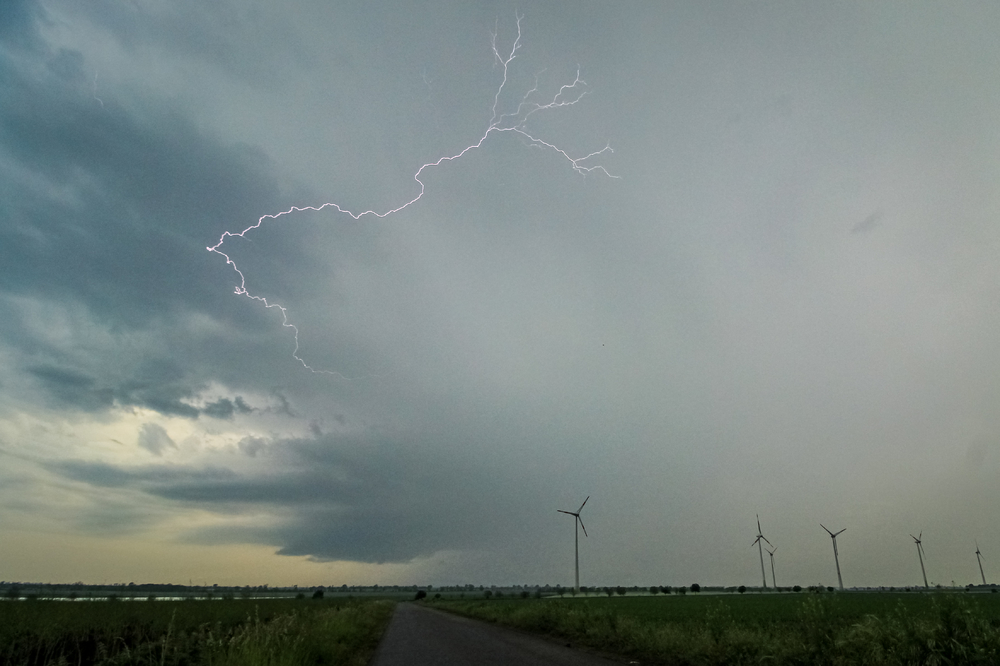 Wir suchten uns einen neuen Standort und beobachteten - der Inflow machte sich anhand der Windräder und der feuchten Luft stark bemerkbar, über uns im Eisschirm blitzte es hoch frequentiert und das nicht ohne, mehrere kräftige positive Entladungen waren langanhaltend zu hören, teilweise zu sehen - was ein Sound, es war beeindruckend (Siehe dazu: Blitzortung Saalekreis vom 20.05.2022, 19:05 Uhr | Wetter von kachelmann.)