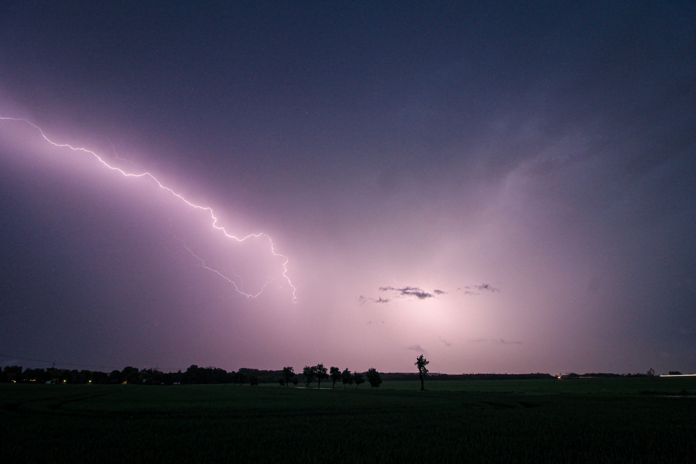 Kaum im Auto, wurden wir von der Böenlinie erfasst und der Regen prasselte nahezu waagerecht auf das Auto von Anton. Dabei wackelten auch schwere Böen an uns - Am LIM in Leipzig wurde eine Böe mit 84 km/h gemessen. Das Schauspiel war nach wenigen Minuten auch wieder vorbei und es tanzten rückseitig die Crawler über uns. Wir verlagerten uns nur um wenige Hundert Meter und begannen, die Lightshow zu genießen...