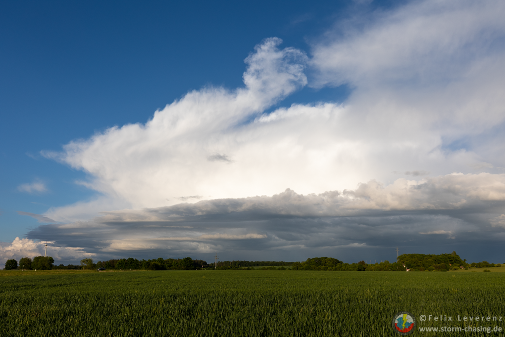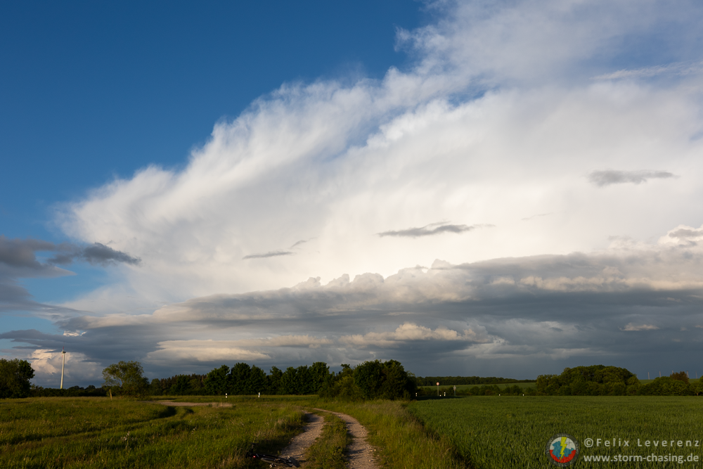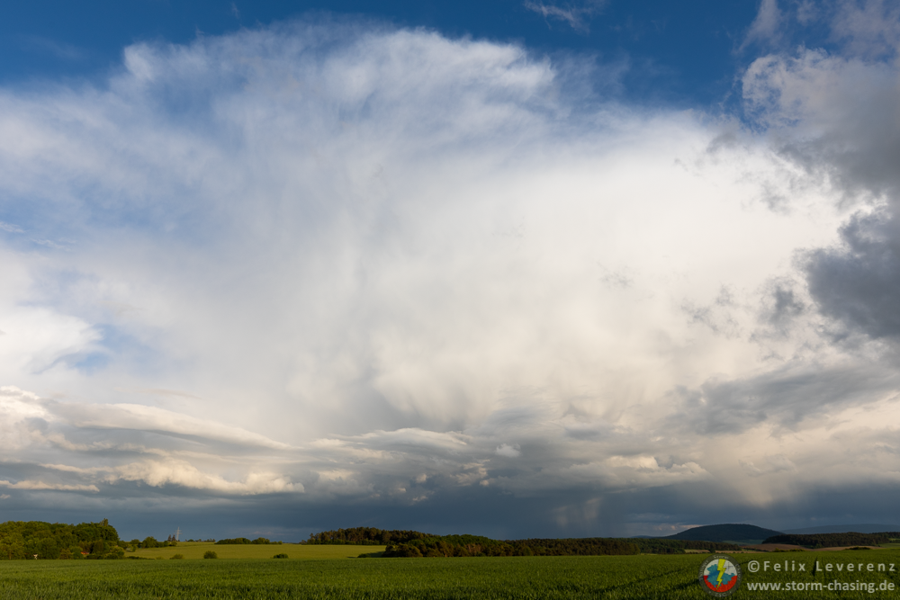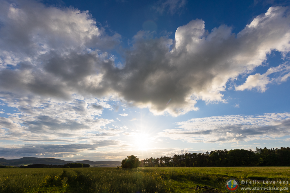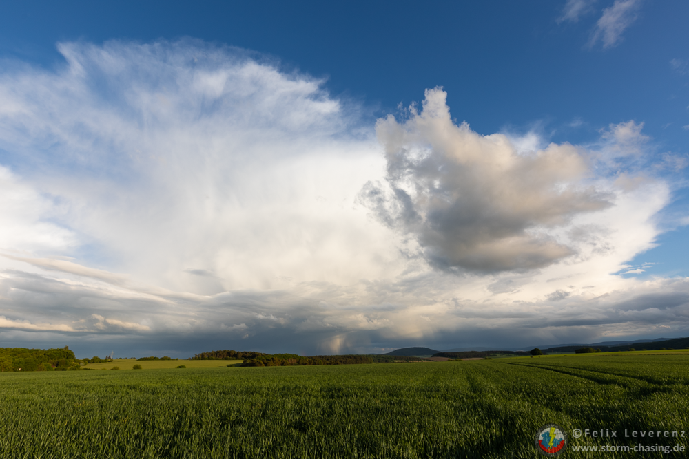 Die weiteren kleinen Schauer Richtung Rudolstadt / Jena erreichten langsam ihr Maximum. Es war wirklich recht erstaunlich zu beobachten wie es, selbst nachdem die Sonne langsam hinter anderen Wolken im Westen verschwand, weiterhin eine stabile Entwicklung der Zellen gab.