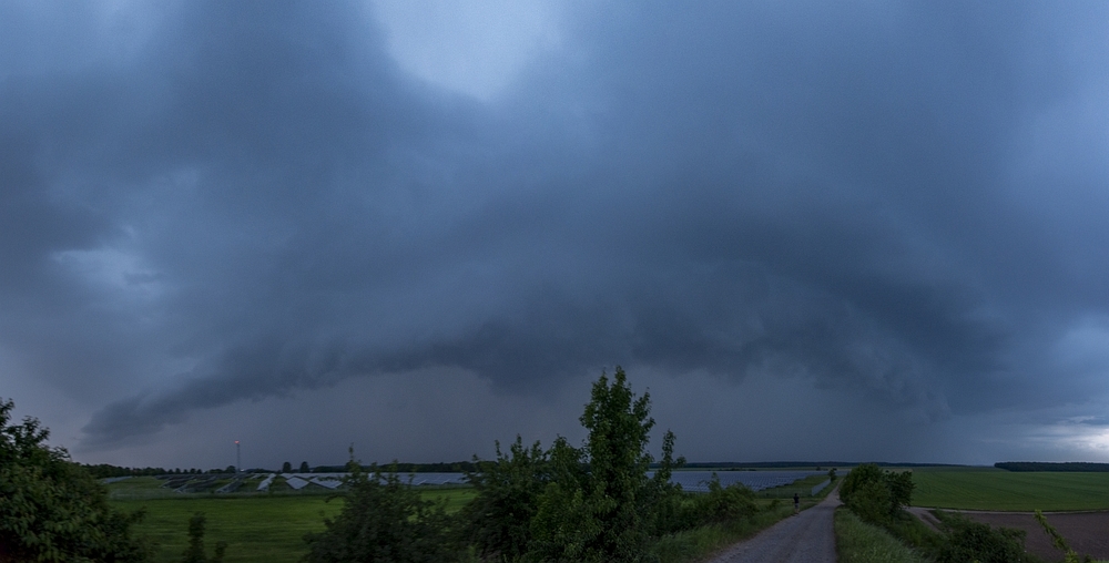 Bei Rüdersdorf noch ein kurzes Panorama im Dunkeln...dann löste sich dieser Teil der Unwetterfront langsam auf