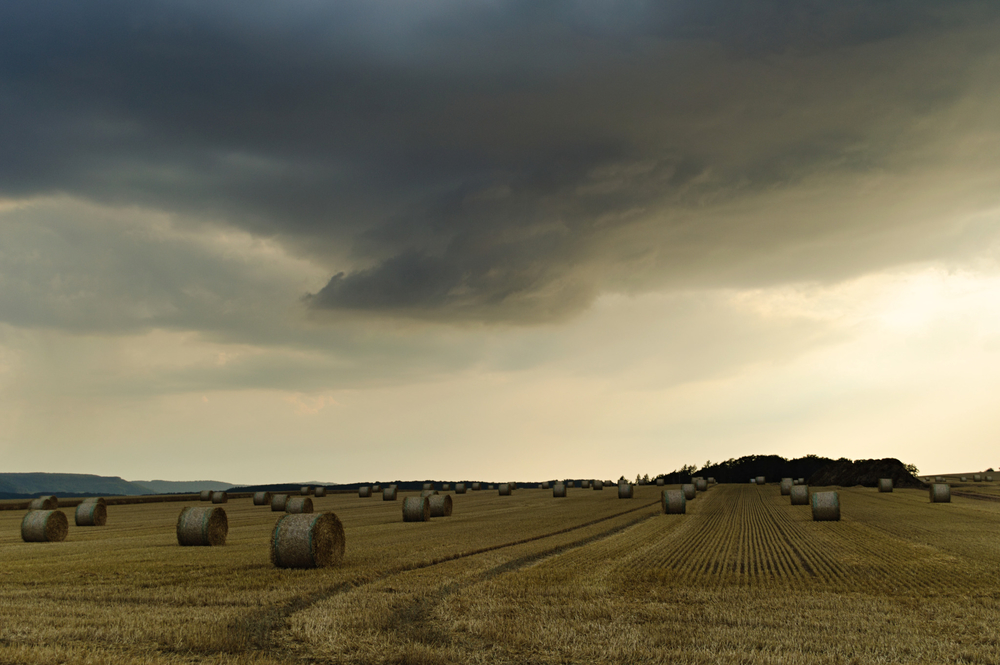 Langsam werden auch die näheren Hügel vom Regen eingehüllt.