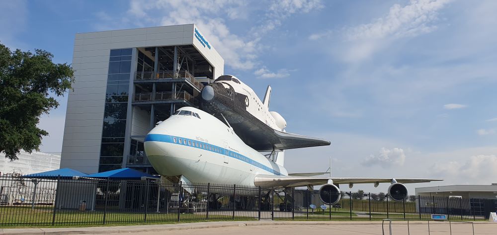 Mit einem überschaubar nahrhaften Frühstück im Magen starteten wir den von Andre vorgeschlagenen Besuch des Space Center Houston unweit unserer Unterkunft. Neben der Ausstellung über verschiedene Raumfahrtprogramme samt beeindruckender Artefakte (diverse Mondgesteine, Kampfpilotinnenanzug von Astronautin Judith Resnik, die am 28.01.1986 in der Challenger-Katastrophe ums Leben kam oder dem Anzug von Michael Collins, Astronaut der Apollo 11-Mission) faszinierten uns vor allem die Außenbereiche und Touren.