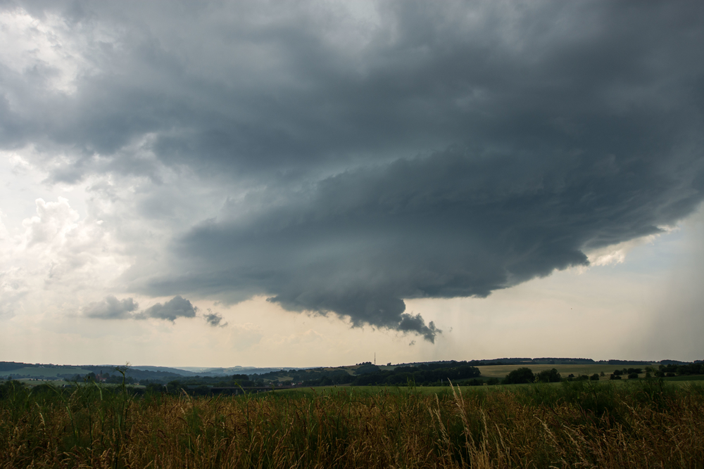 Die Zelle zieht unter Verstärkung weiter auf meinen Standort zu. Die Tailcloud ist zu diesem Zeitpunkt besonders schön ausgebildet und züngelt in den FFD. Das Dauergrummeln nimmt zu.