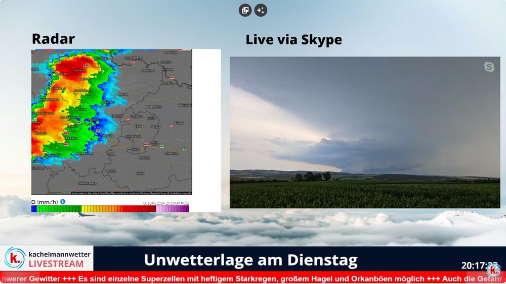 Ergänzend der Livestream von kachelmannwetter: