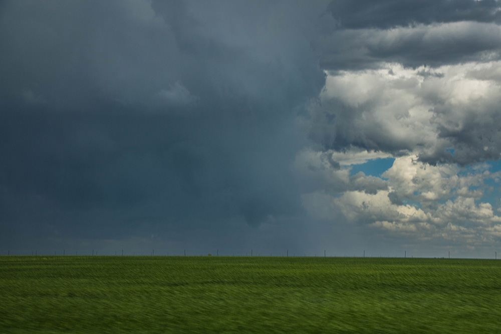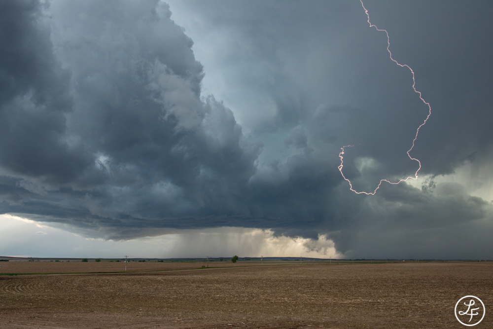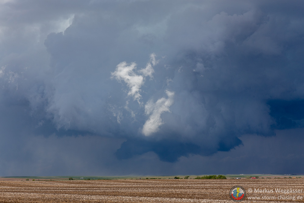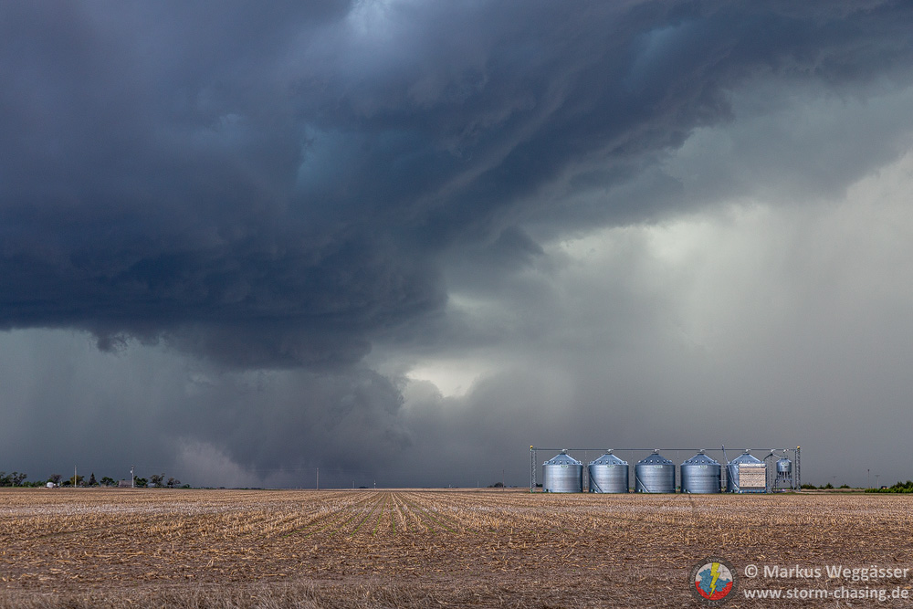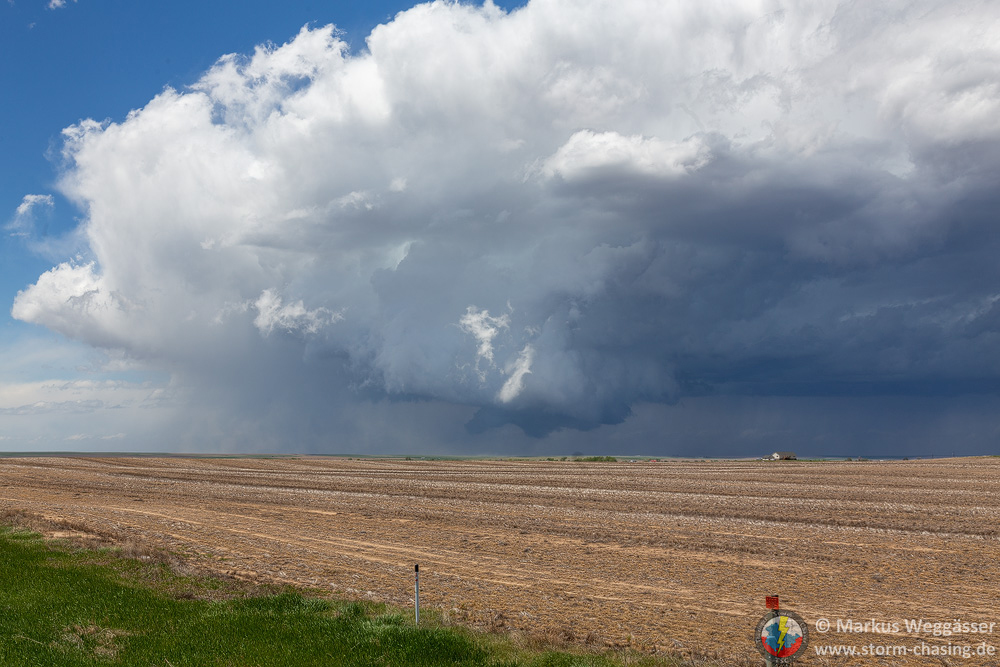 Über die Felder geht’s nach Süden Richtung Lamar. Die Feldwege waren diesmal trocken und befahrbar. Die Entscheidung war richtig, denn bei Lamar sollte sich diese Superzelle weiter intensivieren. Am ersten Halt: