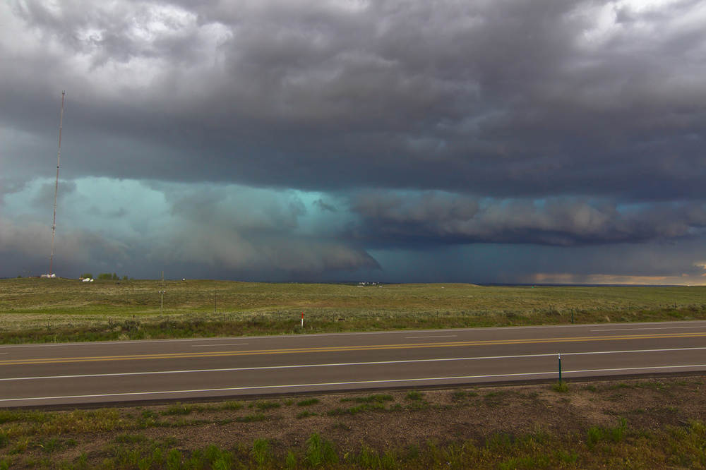 Die Interstate verläuft parallel zur Zugbahn von insgesamt 3 Superzellen zu diesem Moment. Die stärkere liegt bei Sterling. Dort halten wir auch zum tanken während die Sirenen heulen und der Himmel immer interessanter wird.