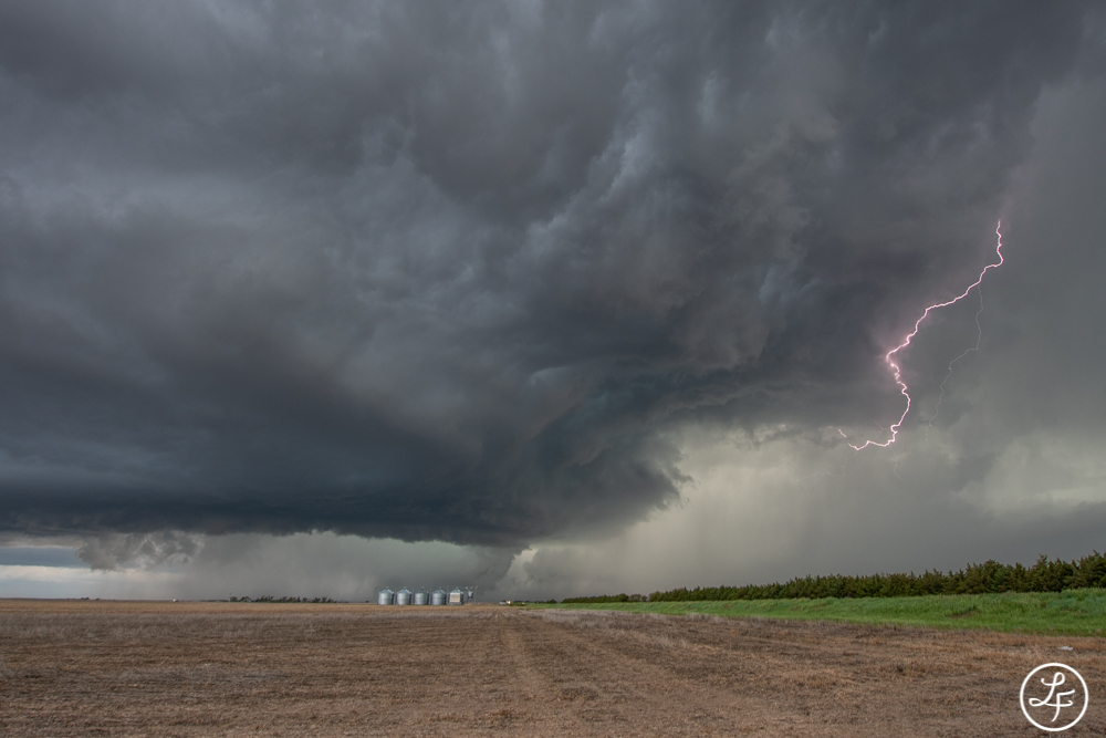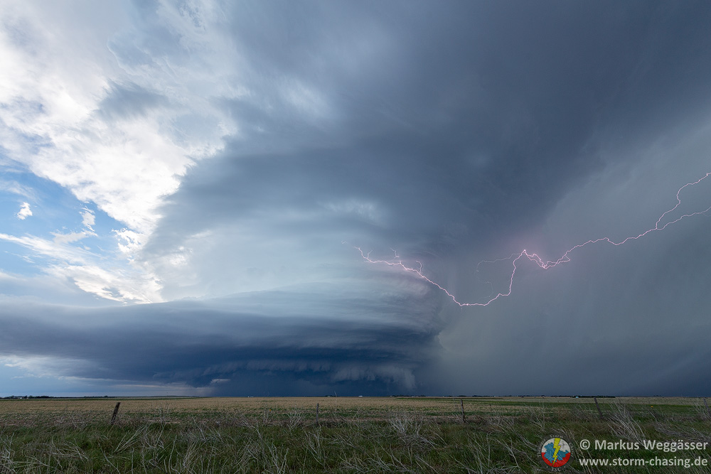 Die Fotos des Tages entstanden kurz vor Imperial, was passenderweise im Chase County liegt. Die Superzelle bildete nun ein eindrucksvolles Mutterschiff aus, das von Blitzen in Szene gesetzt wurde. Was für ein atemberaubender Anblick!