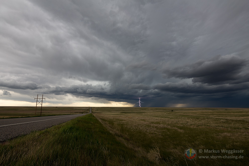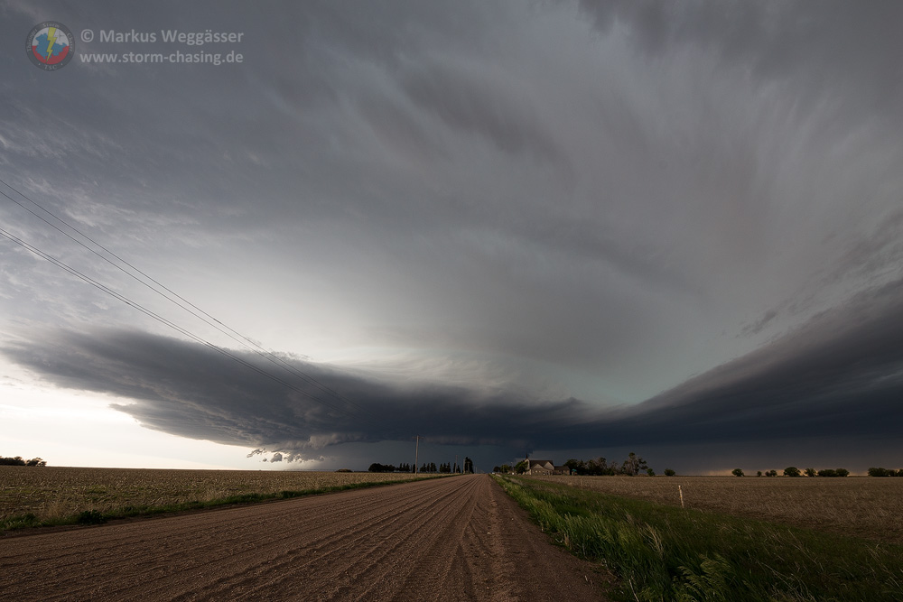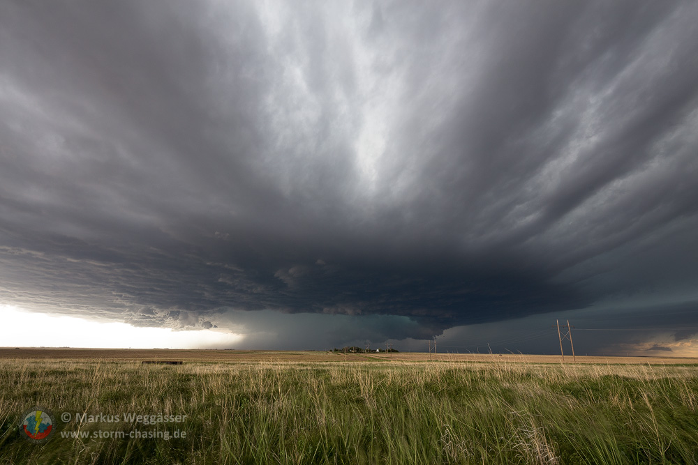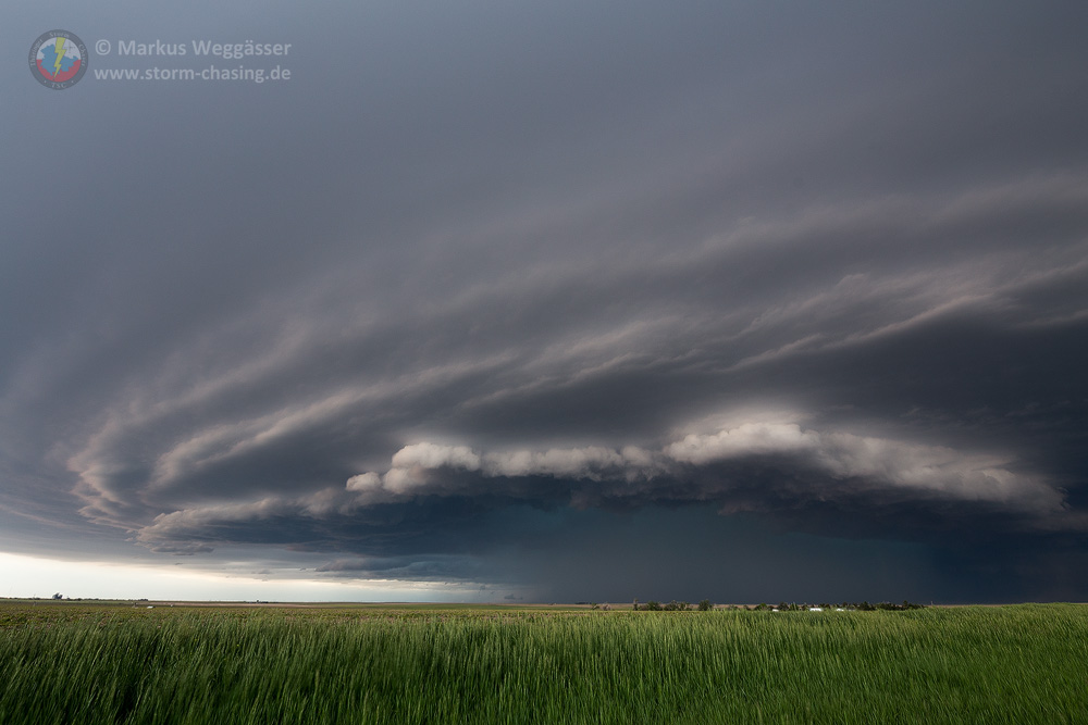 Wir verfolgten 6 Stunden lang eine Superzelle mit fantastischen Strukturen von Limon (CO) bis Goodland (KS). Später ging die Zelle mehr in ein QLCS/Bow Echo über. Bis in die Nacht hinein konnten wir noch Blitze fotografieren. See english summary below.