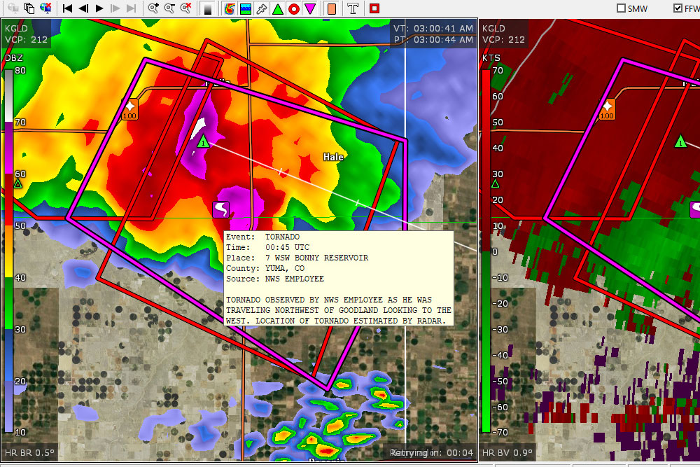 One hour in, the storm has developed into a classic supercell and another 30 minutes later we would have a High Plains beauty with terrific mesocyclone, wallcloud, clear slot and heavy rotation. It was only a matter of time until this beast would spit out a tornado.