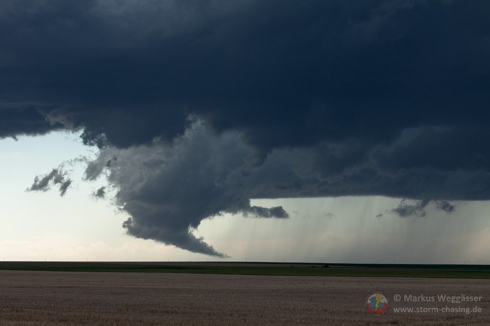 Wir repositionieren uns ostwärts neu und bauen erstmal wieder Abstand zur Zelle und zur Chaserkonvergenz auf. Dann zeigte sich die Superzelle von ihrer besten Seite: