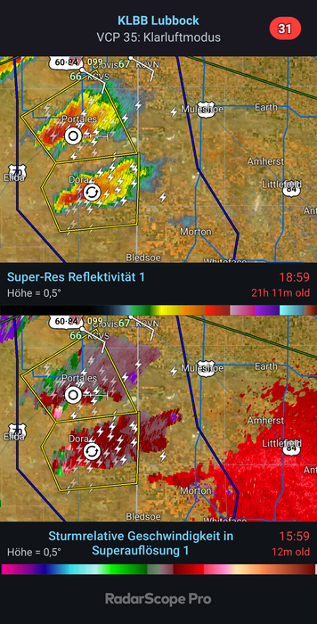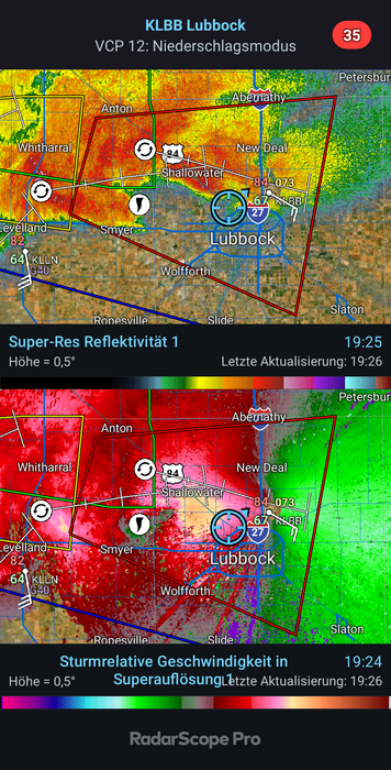 Wir verlagern uns über den Norden von Lubbock auf die Ostseite und warten ab.