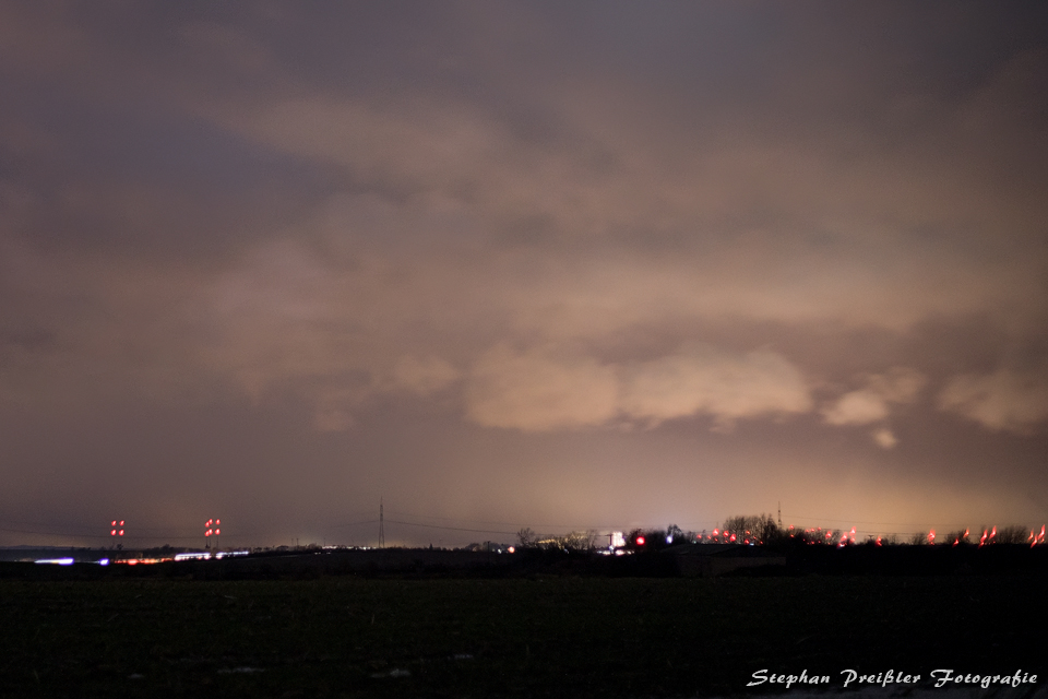 Habe mich heute Nacht noch ein Weilchen auf den Autobahntunnel begeben, um zu schauen, ob von der aus Süden anrückenden und noch relativ stark blitzenden Linie noch was bei uns ankommen würde. Wie so oft hat das Saaletal den östlichen Ausläufer stark eingebremst und wohl etwas die Energie entzogen. Immerhin war dann doch noch zwischen 1:30 und 1:40 etwas schwach erkennbar und der Outflow deutlich spürbar, obschon es nicht mehr blitzaktiv war.