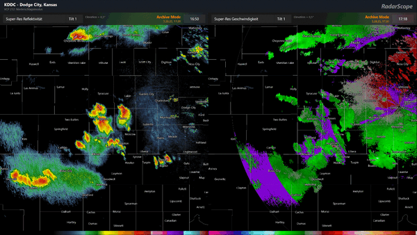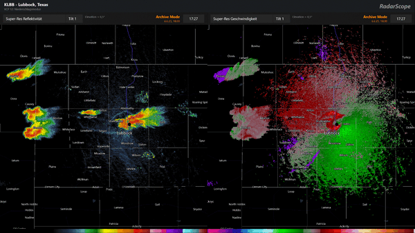Das Hookecho auf dem Radar war immer wieder sehr schön ausgeprägt: