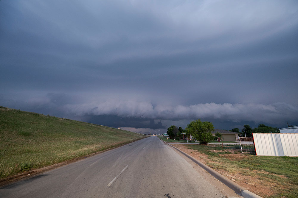 Auf dem Weg nach Süden kommen wir an Oklahoma City vorbei, wo eine neue Zelle sich gerade verstärkt und bereits ein deutliches Hook Echo zeigt. Wir versuche sie kurz anzufahren, um einen Blick darauf zu werfen, doch sie zieht zu schnell, sodass wir schnell wieder abbrechen. In der Metropolregion zu chasen kommt wegen Verkehr sowieso nicht in Frage. Später sollte eines der Gewitter in Norman noch einen Tornado hervorbringen, welcher von Anwohnern dokumentiert wird.