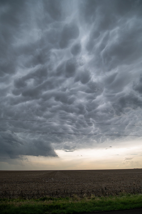 Jetzt heißt es handeln, wir müssen uns Umpositionieren, damit wir von Westen in die Basis schauen können. Während der Umpositionierung zerfällt unser Gewitter. Während dessen zeigt sich an einer der vielen weiteren Entwicklungen ein schönes Feld mit Mammatuswolken: