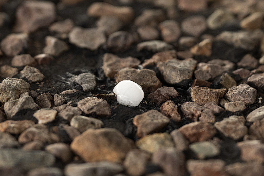 Mittlerweile hat es begonnen zu hageln, weshalb wir uns noch bis zur windgeschützen Seite einer Halle im Starkregen vorgetastet haben. Indessen bin ich über die Rücksitzbank und das Gepäck in den Kofferraum geklettert. Wir haben die Sicherung vom Scheibenwischer mit der von der Klimaanlage getauscht, da keine Ersatzsicherung vorhanden war. Währenddessen war die Neuentwicklung, welche wir vorhin noch gepunscht haben, über uns. Der Haupthagel ging ein kleines Stück südlich von uns durch. Wir bekamen ca. 3cm Hagel ab, einzelne Hagelkörner waren aber auch noch ein gutes Stück größer. Nachdem die Sicherung getauscht war, kam die Ernüchterung: Der Scheibenwischer ging immer noch nicht.