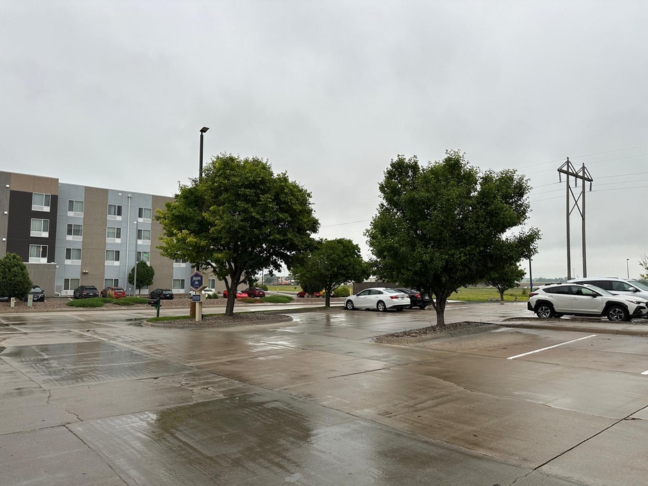 Das heutige Wetter für Hays, Kansas: Stratus, Regen, 14°C und windig. Denkbar ungemütlich, wenn man mit kurzer Hose und T-Shirt vor die Motel Zimmertür tritt.