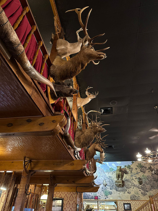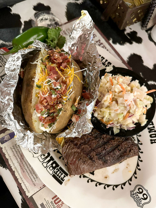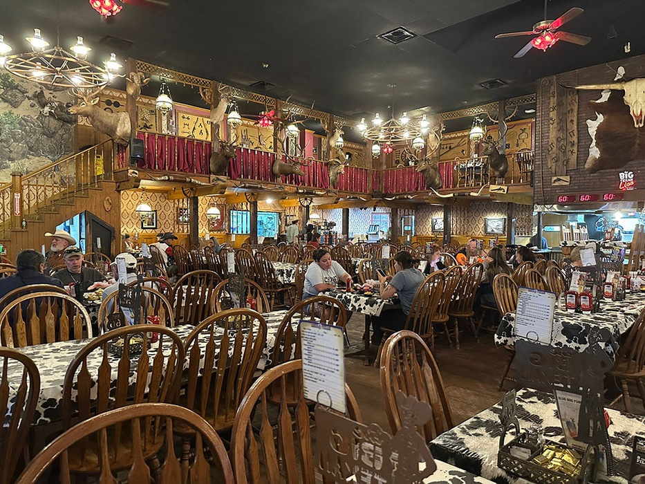 Der heutige Tag begann mit herrlichem Geruch nach Gas und Schwefel – man weiß, man ist im südwestlichen Texas, genauer in Seminole. Die Gegend ist übersäht mit Ölförderpumpen. Da wir heute ins Oklahoma Panhandle/Südkansas wollen, fiel die Entscheidung Mittag in Amarillo am "The Big Texan Steak Ranch" zu halten. Sie ist bekannt für das kostenlose 72oz Steak (über 2kg), insofern man es alleine inklusive Beilagen (Ofenkartoffel, Salat, Shrimps) bezwingt. Der Rekord liegt bei wahnsinnigen 4min 18s. Einheimische würden das Restaurant vermutlich als „Touri-Bude“ bezeichnen, die Einrichtung und auch das Essen ist aber erstklassig, fast schon schnulzig texanisch.