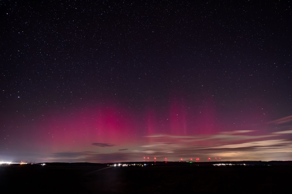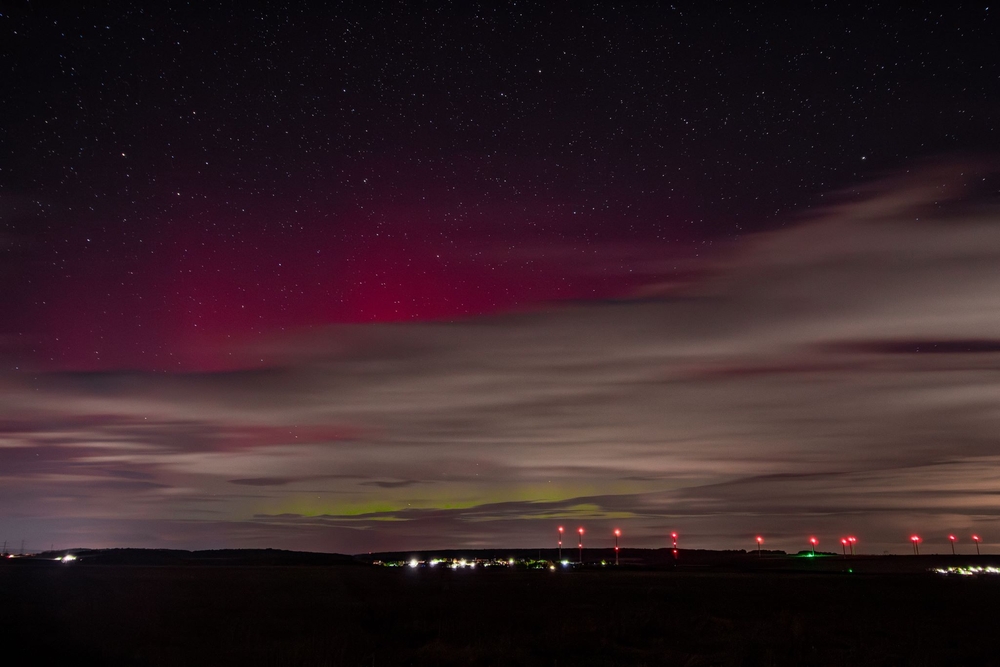 wie auf Kohlen sitzend beobachtete ich von Leipzig aus online das Geschehen und nutze zusammen mit ein paar weiteren Leipzigern die Möglichkeit auf Wolkenlücken in Thüringen. So fuhren wir in meine Heimat nach Bucha und positionierten uns bei Zimmritz. Entgegen der Lichtstreuung von Wolken & einem Gewerbegebiet konnten teilweise deutlich rote und grüne Farben wahrgenommen werden.