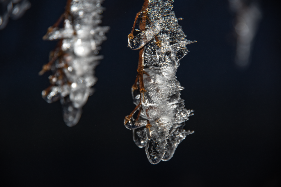 Vereiste Haselnussblüte am 2. März