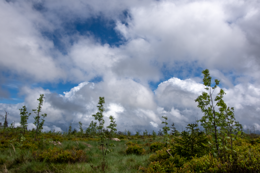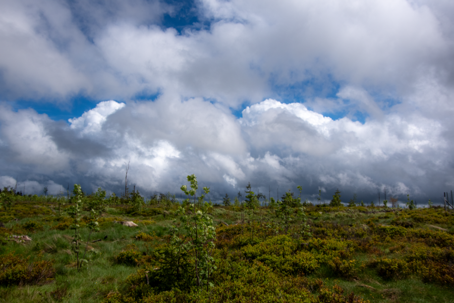 Ein wenig Maifeeling - auf den Kahlschlägen am Rennsteig grünt es wunderbar, Bilder vom Sonntag. Bisher der Mai 2,0 K zu warm...
