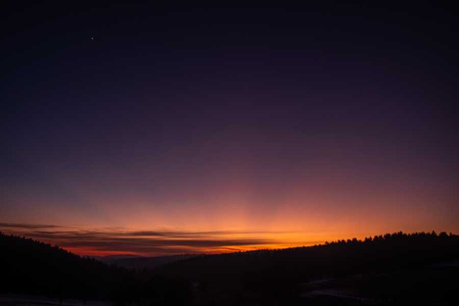Nach sehr langer Zeit heute Morgen wieder einmal eine Lichtsäule zu beobachten, wenn auch nur schwach ausgeprägt