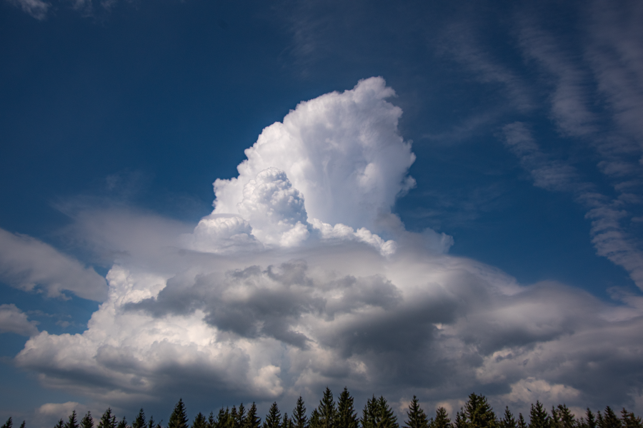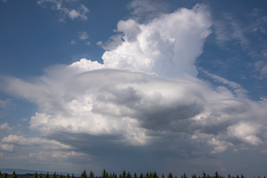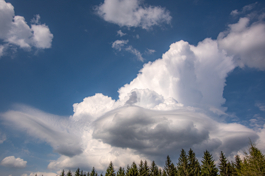 Am gestrigen Nachmittag ein sehr schöner Cb mit malerischen pileus (Kappe) - bzw. schon fast velum(Schleier) Strukturen, fotografiert von der Wetterstation aus